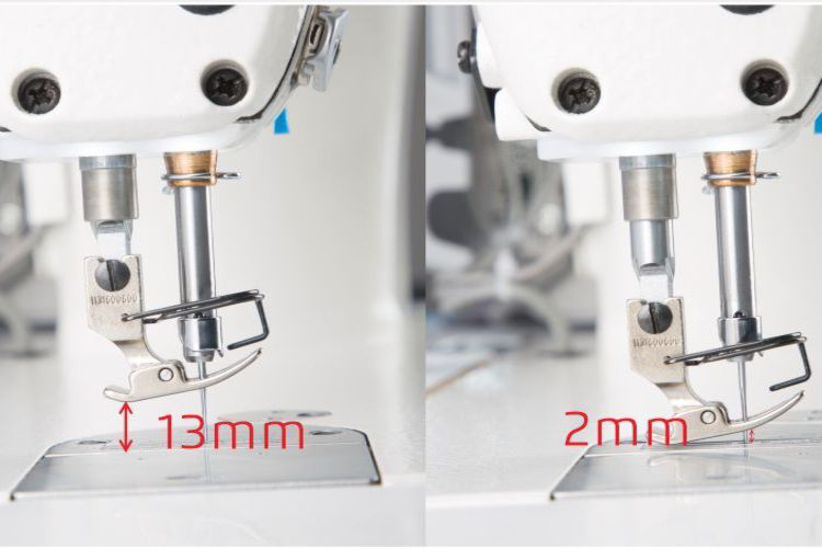 Máquina de coser con levanta prensatelas digital, ajuste de puntada digital, cortahilos automático, presillado digital y cortahilos cortos. Cárter de aceite desmontable.